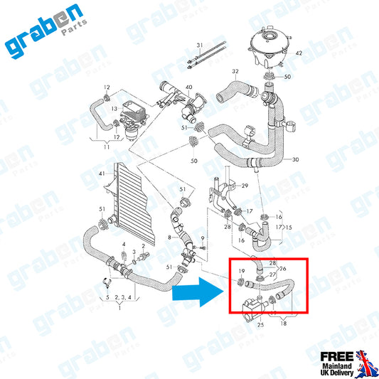 Cooling Hose For Audi / Seat / Skoda / Volkswagen 1.6 TDI / 2.0 TDI 5Q0122073H